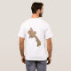 Ein editierbarer Titel und Slogan begleiten den weißen Kreis, der sich auf eine blaue Band mit roten Bändern über und unter der Lao-Fahne auf der Vorderseite dieses T - Shirt konzentriert. Auf der Rückseite wird eine detaillierte Karte von Laos angezeigt.