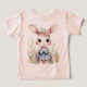 Le lapin lapin lapin de fille le plus mignon en robe bleue prêt à célébrer Pâques