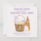 Famille Invitation, amis, groupes ou voisins à une fête spéciale de chasse aux oeufs de Pâques, dîner ou réunion. Cette mignonne invitation blanche et violette est conçue avec le lapin de Pâques et un panier d'oeufs sur un arrière - plan blanc avec lettrage violet. L'inverse inclut les détails de votre événement et les informations RSVP sur un arrière - plan violet avec l'Accent Bunny de Pâques. Pour personnaliser, il vous suffit d'insérer vos détails dans notre modèle pas à pas facile, en remplaçant l'exemple de texte.