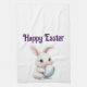 Une image adorable d'un lapin tenant un oeuf, est présentée sur cette serviette de cuisine pour Pâques. Avec le message "Bonne Pâques", cela fait une bonne décoration utilisable pour la saison de Pâques. Ou offrez-le en cadeau !