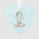 Un ornement avec une charmante illustration d'un petit lapin qui roule dans une montgolfière ornée d'un joli ruban rose, accompagné de fleurs et de papillons. Un arrière - plan bleu pastel lui donne une atmosphère de rêve vintage.