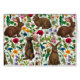lapins et flore boisée dessinés à la main, fougères, champignons, beriies et insectes