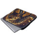 A laptop sleeve for computers up to 15 inches. A rendition of a black and gold leopard is boldly covering the front.