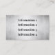 La surface circulaire de motif d'ondulations ou de vagues d'un sembler argenté en métal est un carte de visite de regard unique et professionnel. Facilement personnaliser avec votre propre information. Employez la police noire montrée ou changez facilement le style de police et/ou le colorez pour la personnalisation complète. Une grande carte pour industriel, construction, bâtiment, des véhicules à moteur, et d'autres professions de métier spécialisé, aussi bien que d'autres professionnels artistiques de conception. Plus d'information peut être aussi bien mise sur le dos sur l'arrière - plan de regard en métal. Imprimé sur le papier, métal non réel. Un carte de visite fort qui se tient du repos.