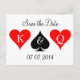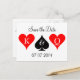 Las Vegas Hochzeit speichern Sie das Datum Postkarten. König und Königin der Herzen Monogramm-Design mit Initialen von Braut und Bräutigam. Poker spielen Karten Anzug, Herz und Pik. Eleganter Skripttext. Personalisieren Sie Informationen.