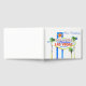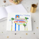 Das Gästebuch von Las Vegas für Hochzeiten hat das berühmte Begrüßungszeichen auf der Vorderseite mit dem Text "Unsere Hochzeit". Weißer Hintergrund. Der Text ist eine Vorlage, die personalisiert oder gelöscht werden kann.