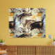 Lascaux (Lascaux Höhlen) (Englisch /ˈkoʊ/, [1] Französisch: [lasko][2]) ist der Schauplatz eines Höhlenkomplexes im Südwesten Frankreichs, der für seine Paläolithischen Höhlenmalereien bekannt ist. Die ursprünglichen Höhlen befinden sich in der Nähe des Dorfes Montignac, im Departement Dordogne. Sie enthalten einige der bekanntesten hochpaläolithischen Kunstwerke. Diese Gemälde sind schätzungsweise 17.300 Jahre alt.[3][4] Sie bestehen hauptsächlich aus Bildern von großen Tieren, von denen die meisten aus fossilen Beweisen stammen, dass sie damals in der Gegend lebten. 1979 wurde Lascaux neben anderen prähistorischen Stätten im Vézère-Tal in die Liste der UNESCO-Welterbestätten aufgenommen. Die Höhle enthält fast 2.000 Figuren, die in drei Hauptkategorien unterteilt werden können: Tiere, menschliche Figuren und abstrakte Zeichen. Die Gemälde enthalten keine Bilder der umliegenden Landschaft oder der Vegetation der Zeit.[11] Die meisten großen Bilder wurden mit mineralischen Pigmenten an den Wänden gemalt, aber auch einige Designs wurden in den Stein eingearbeitet. Viele Bilder sind zu schwach, um sie zu erkennen, und andere haben sich völlig verschlechtert. Mehr als 900 Tiere können als Tiere identifiziert werden, 605 davon wurden genau identifiziert. Darunter befinden sich 364 Gemälde von Pferden sowie 90 Gemälde von Stags. Ebenfalls vertreten sind Rinder und Bisons, die jeweils 4 bis 5% der Bilder repräsentieren. Zu den weiteren Bildern zählen sieben Katzen, ein Vogel, ein Bär, ein Nashorn und ein Mensch. Es gibt keine Bilder von Rentieren, obwohl dies die Hauptnahrungsquelle für die Künstler war.[12] Auch geometrische Bilder wurden an den Wänden gefunden. Der berühmteste Teil der Höhle ist die Große Bullenhalle, in der Stiere, Pferde und Stags dargestellt werden. Die vier schwarzen Bullen, oder Auerochsen, sind die dominanten Figuren unter den 36 hier vertretenen Tieren. Einer der Stiere ist 5,2 m lang, das größte Tier, das bisher in Höhlenkunst entdeckt wurde. Außerdem scheinen die Stiere in Bewegung zu sein.[12] Ein Gemälde, das als "Das Kreuzbison" bezeichnet wird und in der Kammer namens Nave gefunden wird, wird oft als Beispiel für die Fähigkeiten der Paläolithischen Höhlenmaler eingereicht. Die gekreuzten Hinterbeine schaffen die Illusion, dass ein Bison für uns naher ist als der andere. Diese visuelle Tiefe der Szene zeigt eine primitive Perspektive, die für die Zeit besonders fortgeschritten war.