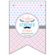 Feiern Sie stilvoll mit diesem trendigen Geschlecht offenbaren Party Bbunting. Das Design ist leicht mit Ihrer speziellen Veranstaltungssprache zu personalisieren, und Ihre Gäste werden begeistert sein, wenn sie diese wunderbare Mischung sehen.