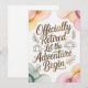 Feiern Sie einen wohlverdienten Ruhestand mit dieser eleganten Aquarell-Grußkarte mit dem handgeschriebenen Zitat „Offiziell im Ruhestand – Lass das Abenteuer beginnen.“