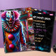 Einladungen zum Halloween-Party. Lass, dass die Spiele beginnen. Beängstigender Clown auf einem Karnevalsstand psychedelische Comic Buch Stil Halloween-Party Einladungen.