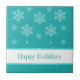 Whimsical und fun Let it Snow Holiday Tile in Türkis mit einer Kaskade von Hand gezeichneter Schneeflocken. Diese lustige Zierkachel würde ein wunderbares Urlaubsgeschenk machen. Einfach zu anpassen, fügen Sie einfach den personalisierten Text Ihrer Wahl.