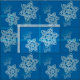 Fotografie eines handgefertigten Doily, fällt wie Schneeflocken am Himmel.