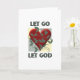 Lass Go und Lass Gott ist eine inspirierende Botschaft für diejenigen in der Erholung, oder für jeden, der ein spirituelleres Leben führen will. Auf dieser Karte befindet sich ein Herz mit Weinreben, die ihn auf einem grünen und gelben Hintergrund umgeben.