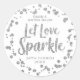 Dieser wunderschöne Glitzer Konfetti-Aufkleber aus Weiß und Silber sagt "Liebe Sparkle Gelassen" und kann auf einem Zuhause-Etikett für Ihre Funkler gesetzt werden! Ändern Sie einfach die Namen und das Hochzeitstermin zu Ihrem eigenen, indem Sie auf "Personalisieren" klicken. Es könnte auch auf einer Sojakkerze oder einer Schachtel mit Streichhölzern als Gastgeschenk Hochzeit platziert werden.