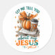 Friedliches, farbenfrohes Design mit Herbst/Herbst-Szene mit einem offenen Buch, Kürbis und Kaffee. Der farbenfrohe inspirierende Text lautet: "Lass mir, dir von meinem Jesus zu erzählen". Dieses Design ist auf einer Vielzahl von Produkten erhältlich.