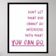 Treten Sie ein in eine Welt der Inspiration mit unserem fesselnden Motivierend Zitat-Poster. Dieses Poster wurde entworfen, um den Geist zu beleben und deinen Antrieb zu entzünden. Es enthält das mächtige Mantra: "lass nicht, was du nicht kannst, um das zu stören, was du tun kannst." Mit seiner eleganten Typografie und seinem auffälligen Design dient es als ständige Erinnerung, Ihre Stärken zu erobern und Hindernisse mit Entschlossenheit zu überwinden. Dieses mit hochwertigen Materialien gefertigte Poster zeichnet sich durch Qualität und Langlebigkeit aus und eignet sich für jeden Raum, egal ob Sie im Büro, im Zuhause oder im Fitnessraum sind. Hänge es dort hin, wo du diesen zusätzlichen Schub brauchst, und lass seiner bestärkenden Botschaft treibt deine Reise zum Erfolg an. Mit diesem Motivierend Zitat-Poster können Sie Ihre Umgebung umgestalten und Ihre Denkweise steigern. Nutzen Sie den Tag und entfesseln Sie Ihr volles Potenzial mit jedem Blick. Keywords: Motivierend, Zitat Poster, Inspiration, Entschlossenheit, Empowerment, Stärke, Typografie, Qualität, Erfolg, Resilienz, Mindset, Ermutigung, Wachstum, Treiben, Vertrauen