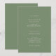 Dieses Design bietet eine minimalistische und elegante Dusche für Paare. Es hat einen schlauen grünen Hintergrund mit weißer Typografie, die klassische Serifenschrift und moderne Kalligraphie für die Betonung kombiniert. Die Gestaltung ist gepflegt und elegant, elegant und elegant zugleich, um die Namen und Veranstaltungsdetails der Paare auf raffinierte und stilvolle Weise hervorzuheben. Das Gesamtdesign fühlt sich zeitlos, anmutig und leicht lesbar an und eignet sich somit perfekt für ein klassisches Fest.