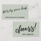 Die Besonderheit dieser Suite ist der moderne, handgeschriebene Skript-Schriftart, der für Akzente verwendet wird. In diesem Stück wurde der handgeschriebene Skript-Schriftart verwendet, um eine Grafik zu erstellen, die die Worte "lass uns ein Getränk zu kaufen", auf die Vorderseite gestellt, und "Beifall!" abbildet. auf der Rückseite.Verwenden Sie die Vorlagenfelder, um Ihre persönlichen Daten hinzuzufügen und dieses einzigartige, moderne Design zu Ihrem eigenen zu machen. Der grüne Hintergrund kann in eine beliebige Farbe geändert werden. Bitte kontaktieren Sie uns bei speziellen Anfragen oder bei der individuellen Betreuung. // 100 //