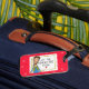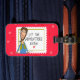 Étiquette durable brillamment colorée de bagage, avec le sentiment d'amusement au sujet de la vie et du voyage. Gardez le calme et "pour effectuer".