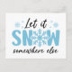 Mit diesem lustigen und frechen "Let It Snow Somewhere Else"-Design verschönern Sie sich in diesem Winter Ihre spielerische Seite. Mit skurriler Typografie und Schneeflockgrafik bringt dieses Design eine humorvolle Drehung in die kalte Jahreszeit. Diese Grafik ist für alle geeignet, die den Urlaub Lieben machen, aber auf den Schnee verzichten können. Sie ist auf verschiedenen Zazzle-Produkten erhältlich, wie z.B. Tasse, Taschen, T - Shirt, Grußkarten, etc. Dieses Design ist ideal für Geschenke oder für das Hinzufügen einer Touch Spaß zu Ihren Alltagsessentials, um jedem ein Lächeln ins Gesicht zu bringen!