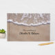 Stilvolles Strandthema Hochzeitsgast-Buch mit einem Foto von Wasser abwaschen auf einem Sandstrand. Personalisieren Sie die Textfelder für Ihren besonderen Tag. Die passenden Hochzeitsprodukte stehen zur Verfügung.