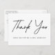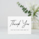 Einfache Hochzeit Dankeschön Postkarte mit "Danke" angezeigt in einem schwarzen handgeschriebenen Skript mit einem weißen Hintergrund. Personalisieren Sie die Vorderseite des modernen danke Ihnen Postcard, indem Sie Ihren Namen. Fügen Sie Ihre Rücksendeadresse und eine benutzerdefinierte Nachricht auf der Rückseite hinzu.