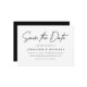 Einfache Save the Date Karte mit "Save the Date" in einem schwarzen handgeschriebenen Skript mit weißem Hintergrund. Personalisieren Sie die moderne Save the Date-Karte, indem Sie Ihre Namen, das Hochzeitsdatum, den Hochzeitsort, die Hochzeitswebsite, etc. hinzufügen. Die minimalistisch Save the Date Karte kehrt um, um einen soliden schwarzen Hintergrund mit Platz für zusätzlichen Text und Fotos anzuzeigen.