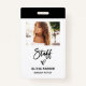Dieses trendige, auffallende Abzeichen für Ihre Mitarbeiter ist viel modischer und stilvoller als jedes alte ID-Abzeichen! Das Schwarz-Weiß-Design verfügt über ein modernes lässiges Drehbuch, in dem "Mitarbeiter" steht, mit einem von Hand gezeichnet Herz und einem Platz für das Foto Ihrer Mitarbeiter. Perfekt für jede Art von Karriere, wie Makeup-Künstler, Wellness-Center- oder Nagelstudio, Retail Mode, Bar oder Restaurant, Unterhaltung oder Ähnliches.