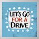 "Let's Go For A Drive" ist ein niedliches Textdesign in hellblau mit schwarzem und rotem Text, zusammen mit einer weißen Akzent-Form und weißen texturierten weißen, weißgetönten weißen Punkten, die ihn umgeben.