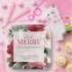 Weihnachtliche Brautparty-Einladung mit dem Thema "Lasst uns fröhlich sein, bevor sie heiratet" mit eleganten, handgemalten roten und grünen Blumen und sanften Blattverzierungen. Dieses Design bringt eine romantische und feminine Atmosphäre, perfekt für Weihnachtsfeiern, Brunch-Partys, Gartenpartys und besondere Vorhochzeitsfeiern. Passen Sie den Text an Ihre Veranstaltung an und machen Sie ihn zu Ihrem eigenen.