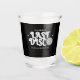 Last disco 70s style bachelorette partyshot glass with custom names. Design features disco ball and black and silver retro font with text last disco. Click customize to add your names and details or edit in design tool for further editing.