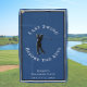 This modern microfiber golf towel has a black golfer silhouette on a blue background and an editable message for personalization. Makes a fun groomsmen gift for a golf weekend bachelor party.