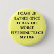 Im Nachhinein würde ich eher den Button mit Magnet bestellen... damit dieser bei jeder Kleidung angebracht werden kann. Sehr gute Bildqualität