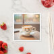 Latte Tasse mit einem Lächeln und cremigem Herz durch ein sonniges Fenster.