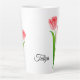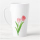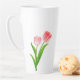 Cette tasse en latte est montrée une belle tulipe rose avec des gouttelettes d'eau imprimé. Couleur Blanc Customiser cet article ou acheter tel quel. Stock Imprimer freepik.com