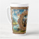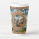 C'est une tasse en latte qui est une grosse. Il possède un cadre élaboré en pierres semi-précieuses et un tableau.