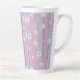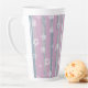 Sip in rustic charm with the Gingham Orchard Latte Mug. This cozy and whimsical design features vertical brushstroke stripes in soft shades of pink, gray, and blue, layered with white gingham silhouettes of apples and flowers. The combination of painterly textures and classic gingham patterns creates a nostalgic yet modern feel — perfect for mornings, study breaks, or gifting.