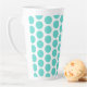 Cette tasse en latte de grande taille est montrée avec un imprimé pois mignon.