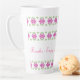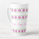 Rosa blühende Designer-Tasse mit weißem Hintergrund kann in jede Farbe geändert werden, um Ihren Stil zu ergänzen, die inspirierende Nachricht kann auf Ihre eigene geändert werden, oder Text ist auf dieser großen, latten Tasse entfernt.