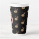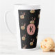 Tasse mit Korbgeflecht. Schwarze Tasse, für Kaffee oder Tee, und ein Platz für eine Monogramm-Initial.