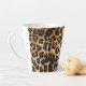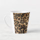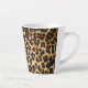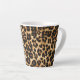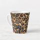 Diese kleine Latte-Tasse wird mit einem Leopard aus Tierdruck gezeigt.