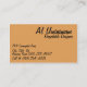 Vertikale Vorderseite mit Horizontaler Rückseite. Ein gemustertes Design mit drei vertikalen Balken entlang der oberen vertikalen Grenze dieser Visitenkarte ist individuell anpassbar. Das gemusterte Design ist in den Wüstenfarben Henna, verbrannt orange und schwarz. Personalisieren Sie den Text, entfernen Sie jeden beliebigen Text oder wählen Sie mit dem Tool Bearbeiten einen Schriftart, den gewünschten Stil, die gewünschte Größe und Farbe aus.
