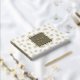 Ein schlichtes, aber auffälliges, elegantes, nahtloses Muster mit kleinen, in Aquarellfarben zusammengesetzten Aschenblättern in mutiertem Mandeltaupe-braunem Set vor einem dunkelweißen Hintergrund mit einem quadratisch-braunen Einlage, umgeben von echter Goldfolie. Drei Vorlagen für Ihre benutzerdefinierte Formulierung erscheinen auf der Einlage und eine auf der Wirbelsäule. Alle Vorlagen sind reale Folie, um einen zeitlosen und luxuriösen Look auf dem Cover zu schaffen. Ideal für eine "botanische Hochzeit", ein Hochzeitstag auf dem Land, ein Sitzabendessen oder eine von Natur inspiriert Gala-Veranstaltung / Jahresende. Lassen Sie die Erinnerungen mit diesem maßgeschneiderten und eleganten luxuriösen Sake verwöhnen. Folie und Schriftart können in Silber- oder Rose-Gold umgestellt werden, und die Seiten von schwarz bis weiß, wenn man Metallspitzen verwendet, um den Seiten ein wenig luxuriösen Glammer hinzuzufügen.