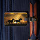 Zwei Pferde, die bei Sonnenuntergang laufen, lassen dieses Gepäckschild auffallen. Sie können den Rücken mit Ihrer persönlichen Information anpassen, oder das macht auch ein wunderbares personalisiertes Geschenk!