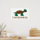 Es sieht vielleicht nicht so aus, aber "Ich renne!", sagt eine Schildkröte. Das sonnige Sprichwort für beschäftigte Leute, die vielleicht nicht so aussehen, als würden sie viel erreichen. Eine von Hand gezeichnet Abbildung.