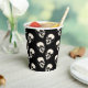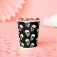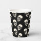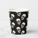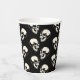 This paper cup is great for a Halloween party with its laughing skulls pattern (cream color) on a black background.