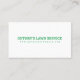 Gartendienstkarte, mit einem grünen und gelben Rasenmäher mit Nulldrehzahl.