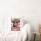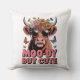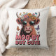 Eine süße Highland-Kuh mit Blumen und Schmetterlingen. Typografie von Moo-dy But Cute. Hintergrundfarbe kann hinzugefügt werden.