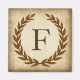 Ein zarter Lorbeerkranz wird auf einem alten Papyrus-Papieruntergrund im klassischen römischen Stil geschichtet. Dieses Design ist personalisiert mit dem Monogramm "F" in einem reichen sienna Ton.