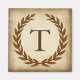 Ein zarter Lorbeerkranz wird auf einem alten Papyrus-Papieruntergrund im klassischen römischen Stil geschichtet. Dieses Design ist personalisiert mit dem Monogramm "T" in einem reichen sienna Ton.